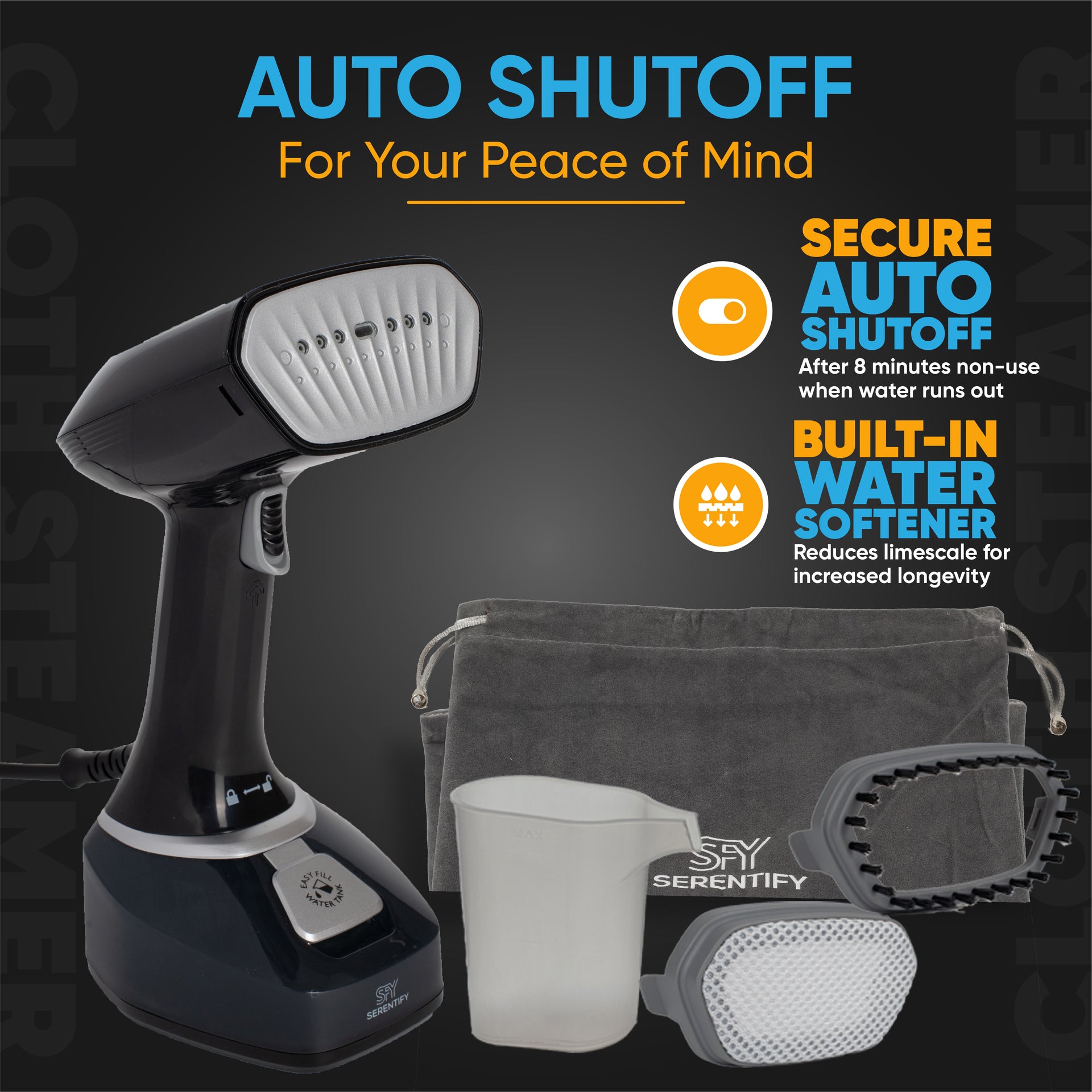 [Auto Shut-Off] The SteamPro Ultra turns itself off after 8 minutes of inactivity or if the water tank is empty, for added peace of mind that you won't leave it on accidentally.