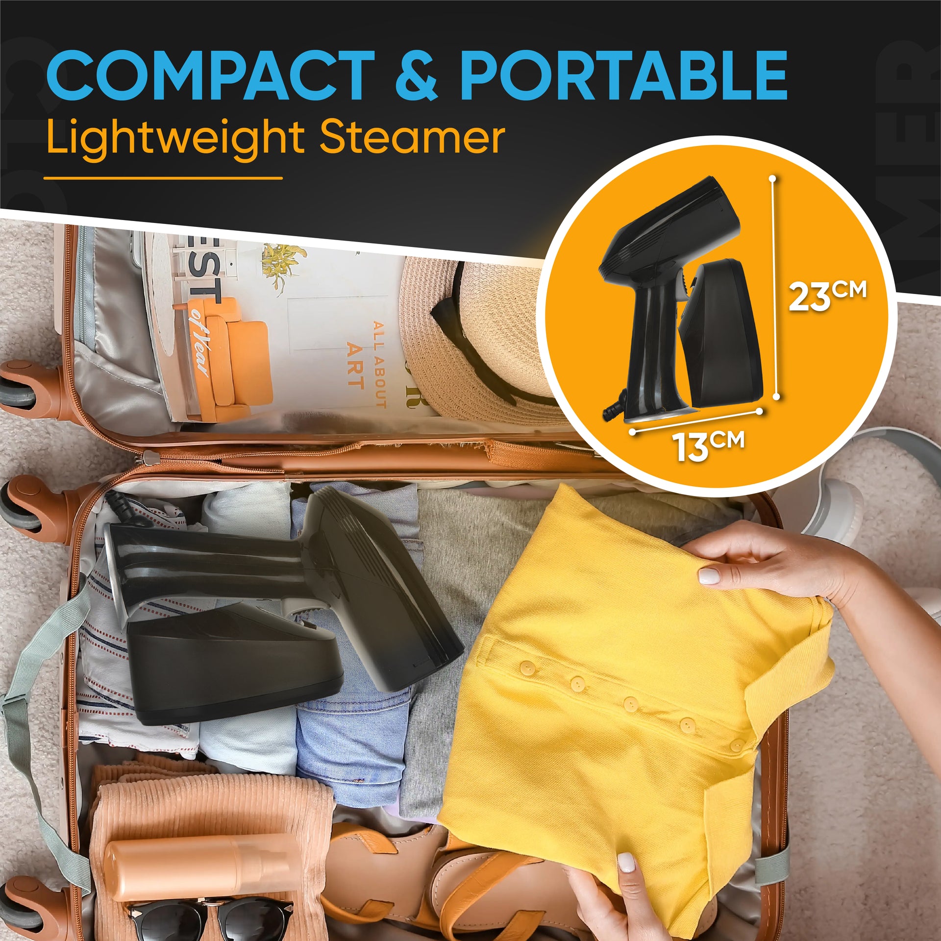 [Compact and Portable] Designed for on-the-go convenience, at less than 700g, our handheld steamer is lightweight and compact, making it ideal for travel, business trips, and quick touch-ups at home or in the office.