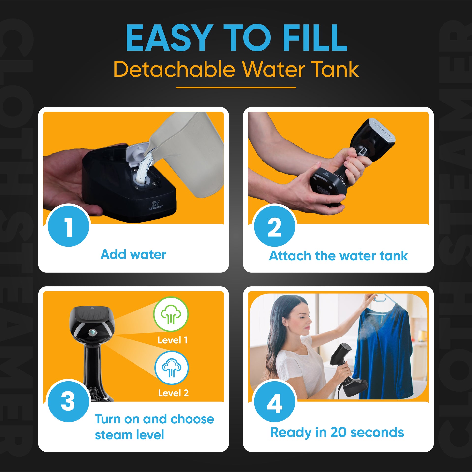 [20 Second Fast Heat-Up] No more waiting around! Our clothes steamer features advanced heat-up technology, allowing it to reach the perfect steaming temperature in just 20 seconds.